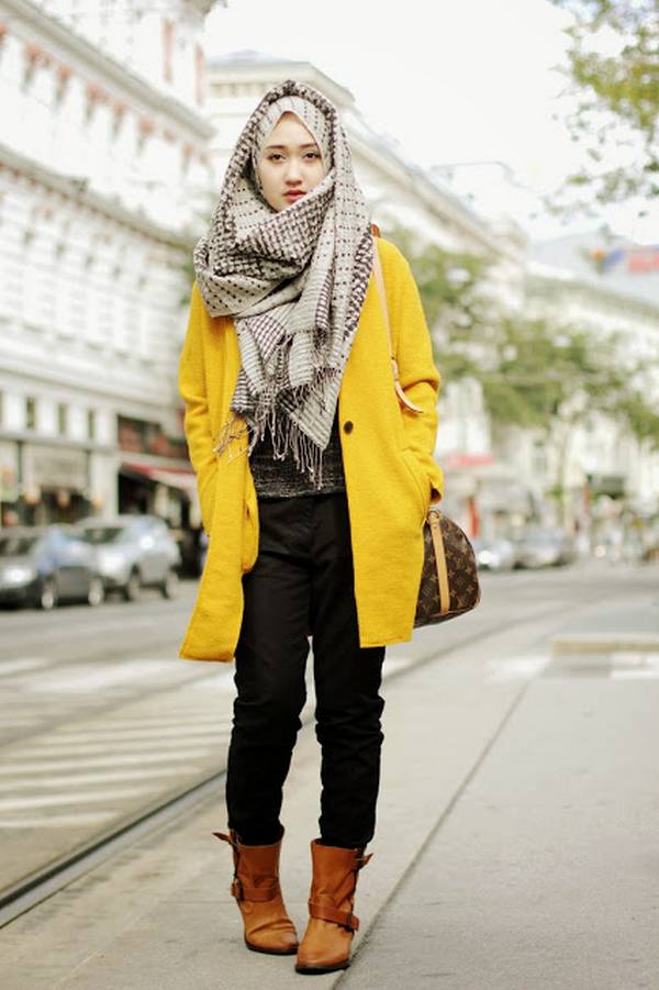 6- استخدمي اسكارف من القطن السميك أو حتى الخفيف حتى يتماشى مع اوقات الشتاء المختلفة سواء الشمس أو البرد والمطرة.