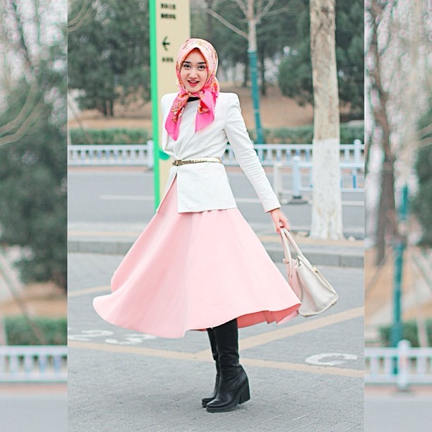 4- ليس شرطا ان يكون البليرو والشنطة لها نفس لون الحجاب ولكن يمكنك أن تستخدمي الوان متدرجة أو متقاربة من بعضها البعض ومتناسقة مع لون اللبس.